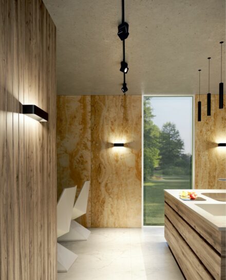 Kom es un foco proyector led de interior para carril de 20W, 30W y 40W de potencia y con adaptador para carril trifásico incluido. Esta colección resulta ideal para ámbitos comerciales y de retail, perfecta para iluminar módulos de exposición para farmacias, librerías o almacenes. Su instalación para carril hace que la distancia entre los proyectores sea móvil y facilita que la iluminación se adapte a las necesidades del espacio en caso de variación. Su alto índice en la reproducción cromática hace que también sea una muy buena opción para galerías de arte o museos.
