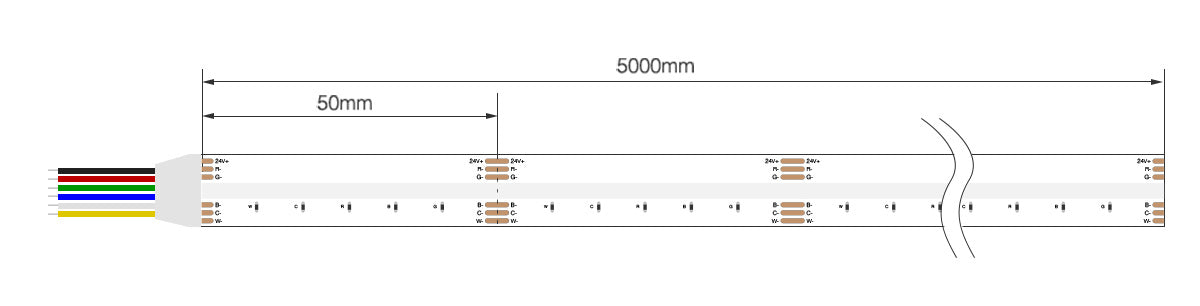 TIRA LED COB RGB+CCT DC24V 168LED/m IP20 12mm